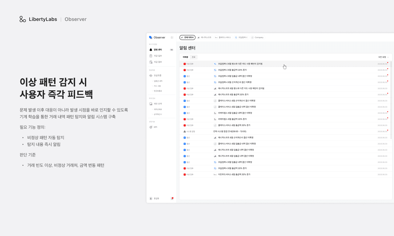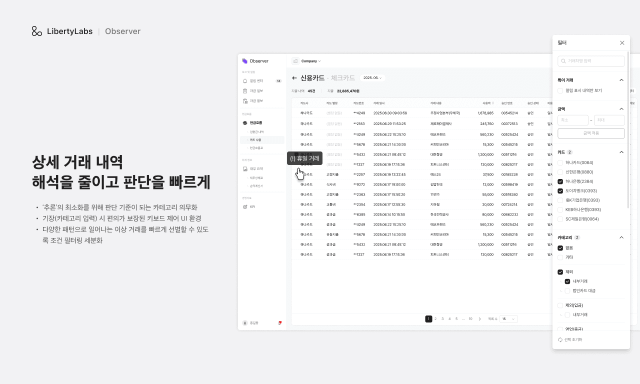 자회사에서 일어나는 현금 흐름을 온전히 보존하고 적시에 이상 징후를 감지할 수 있는 현금/카드 사용 내역 관리 및 이상 거래 탐지 시스템 구축