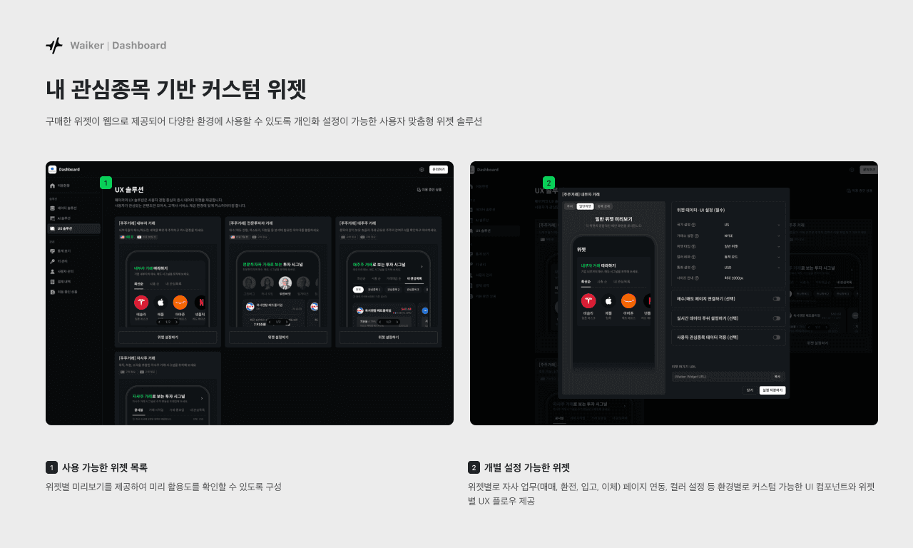 더 나은 투자 의사 결정을 위해 데이터 패키징과 위젯, 번역 솔루션을 제공하는 플랫폼 대시보드입니다. (설계 50% / 디자인 100% / SPO)