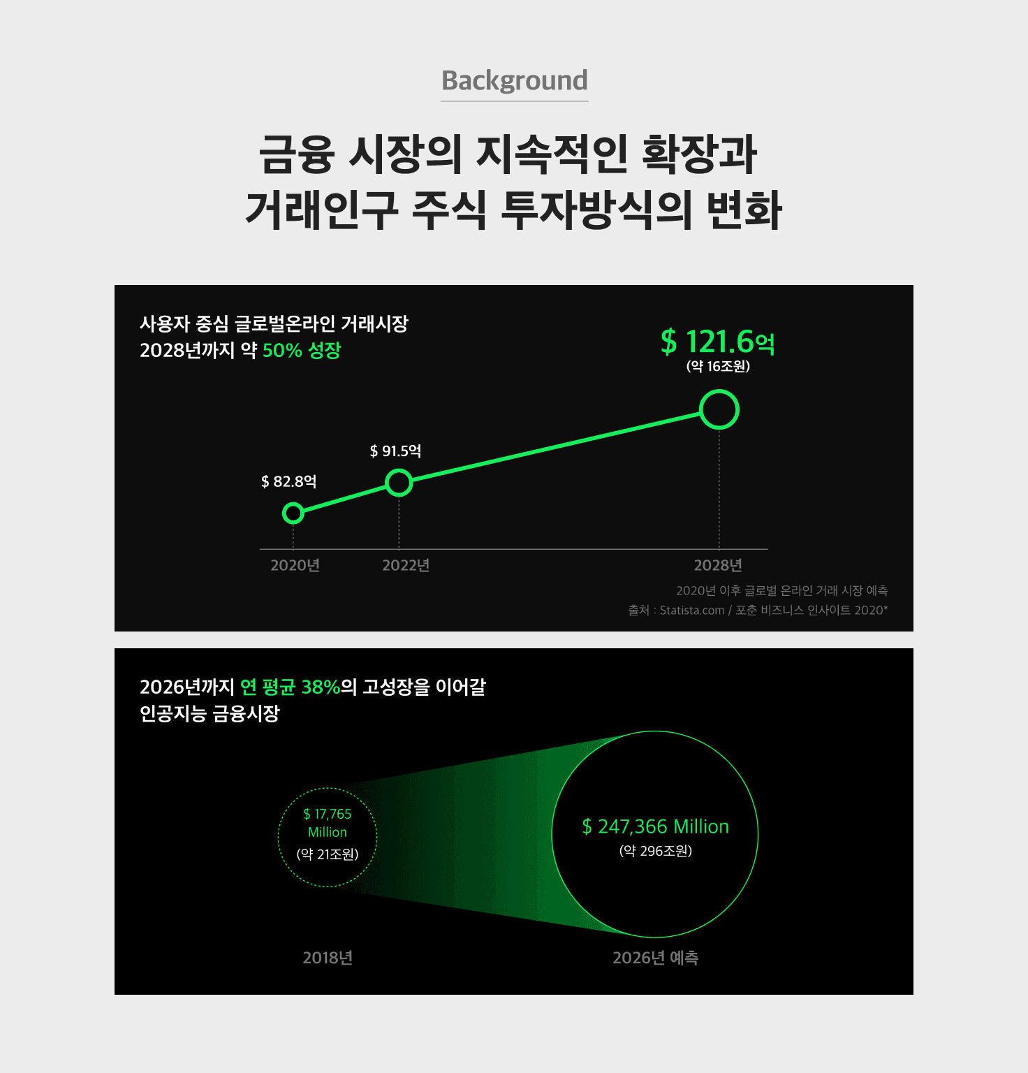 기존의 오래된 Bloomberg, Refinitiv에 의존하던 기성 금융 시스템에서는 구조적으로 환경 개선이 어렵고, 사용자가 느끼기에 불친절하며 부정확하고 느린 증시 데이터 경험이 누적되어 접근에 어려움을 느끼게 됨.